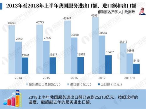 2018年上半年,中国服务贸易地位继续提升。上半年,服务贸易占对外贸易总额的比重达15.2%,服务进出口增速高于同期货物进出口增速0.6个百分点,高于同期国民经济增速1.7个百分点。服务出口增速高于进口增速7.5个百分点,服务贸易逆差自2010年以来首次出现收窄。