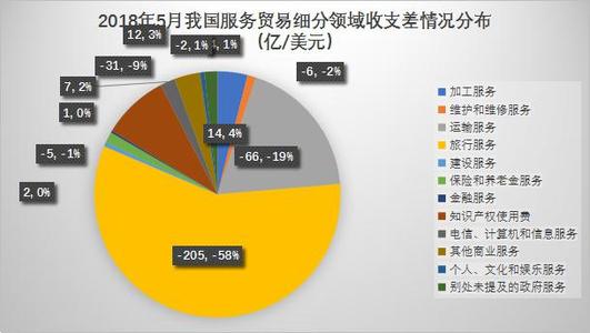 2. 从各细分领域来看,运输、旅游、知识产权使用费,仍然是造成我国服务贸易逆差的三大方面,分别造成63亿、225亿和26亿美元的逆差。